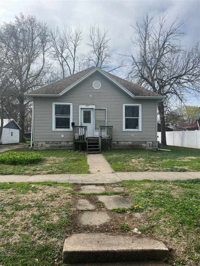 1 story home in the heart of Washington. Features 2 main floor bedrooms and 1 bath. 9' ceilings and a blend of wood and vinyl flooring throughout the main floor. Open basement floor plan ready to be finished to the new owners liking. A drive through driveway from alley to Main St. with a large detached garage and ample outdoor space. New water heater in 2025. Home is being sold "as is" Buyer may conduct inspections for Buyer knowledge only. Please allow 48 hours for response on all offers.
