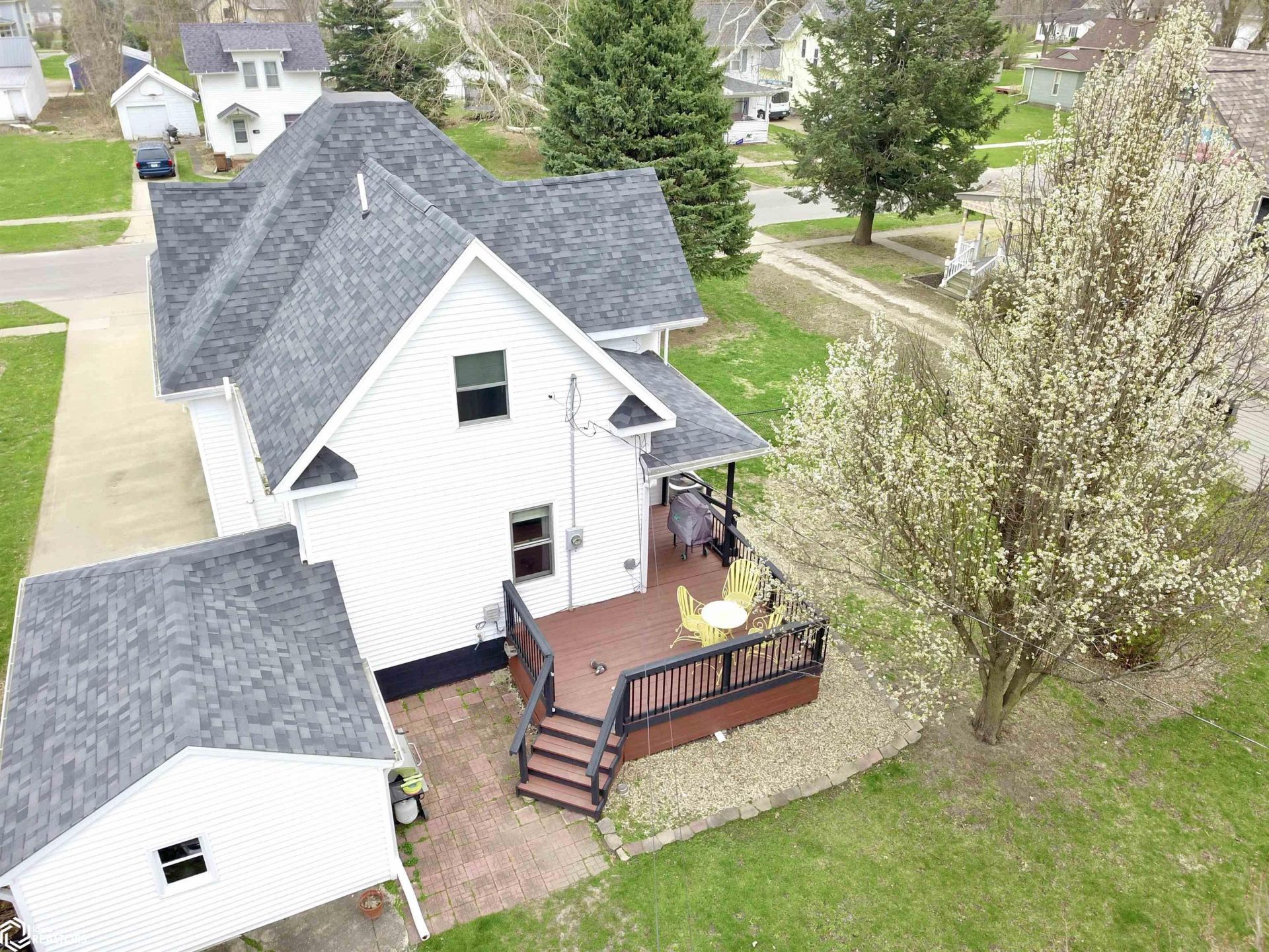 Welcome to this charming and surprisingly spacious 1.5 story home that perfectly blends classic character with functional modern updates. Situated just a few blocks from the vibrant shops and restaurants of downtown Grinnell, Grinnell College, and Summer Street Park, this location offers the best of the community at your doorstep. Step inside from the enclosed front porch with its classic porch swing into an organized foyer featuring built in storage. The main floor boasts beautiful hardwood flooring and a bright living room that flows into a light and airy eat in kitchen equipped with newer countertops and a dedicated walk through pantry. Flexibility is key with a main floor office that connects via a walk through closet to a main floor bedroom and full bathroom. This layout provides easy access to the back deck with private views of the fully fenced in backyard. Upstairs you will find two additional large bedrooms with walk in closets, a second full bathroom, and a convenient laundry room. The full basement offers expansive storage space and a secondary sink and toilet. Storage is a breeze with both an attached one car garage and an additional detached one car garage. This comfortable and move in ready residence is a must see. Make your appointment! Schedule your private tour today!