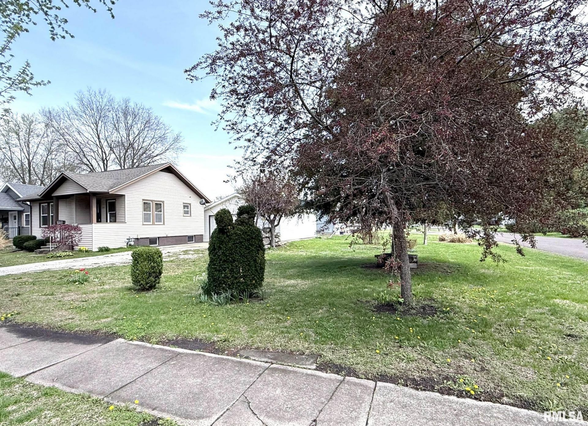 Nestled onto a desirable corner lot, this cozy 2 bedroom (1 nonconforming), 1 full bath home presents a great opportunity for those looking to simplify, stop renting, or invest. Featuring a bright & comfortable living room, functional kitchen with generous cabinetry, a full bathroom, and charming natural woodwork throughout. The primary bedroom is tucked at the back of the home, and just off the living room, an additional area offers flexibility for a second bedroom, den, or home office. The full basement offers great storage space or even a place for hobbies. Outdoors, enjoy your morning coffee on the covered front porch or relax on the back patio. The side yard is blooming with beautiful flowers and provides plenty of room for spring activities. Complete with a detached 2-car garage, don't miss out on this chance to expand your rental portfolio or settle in and make it your own!